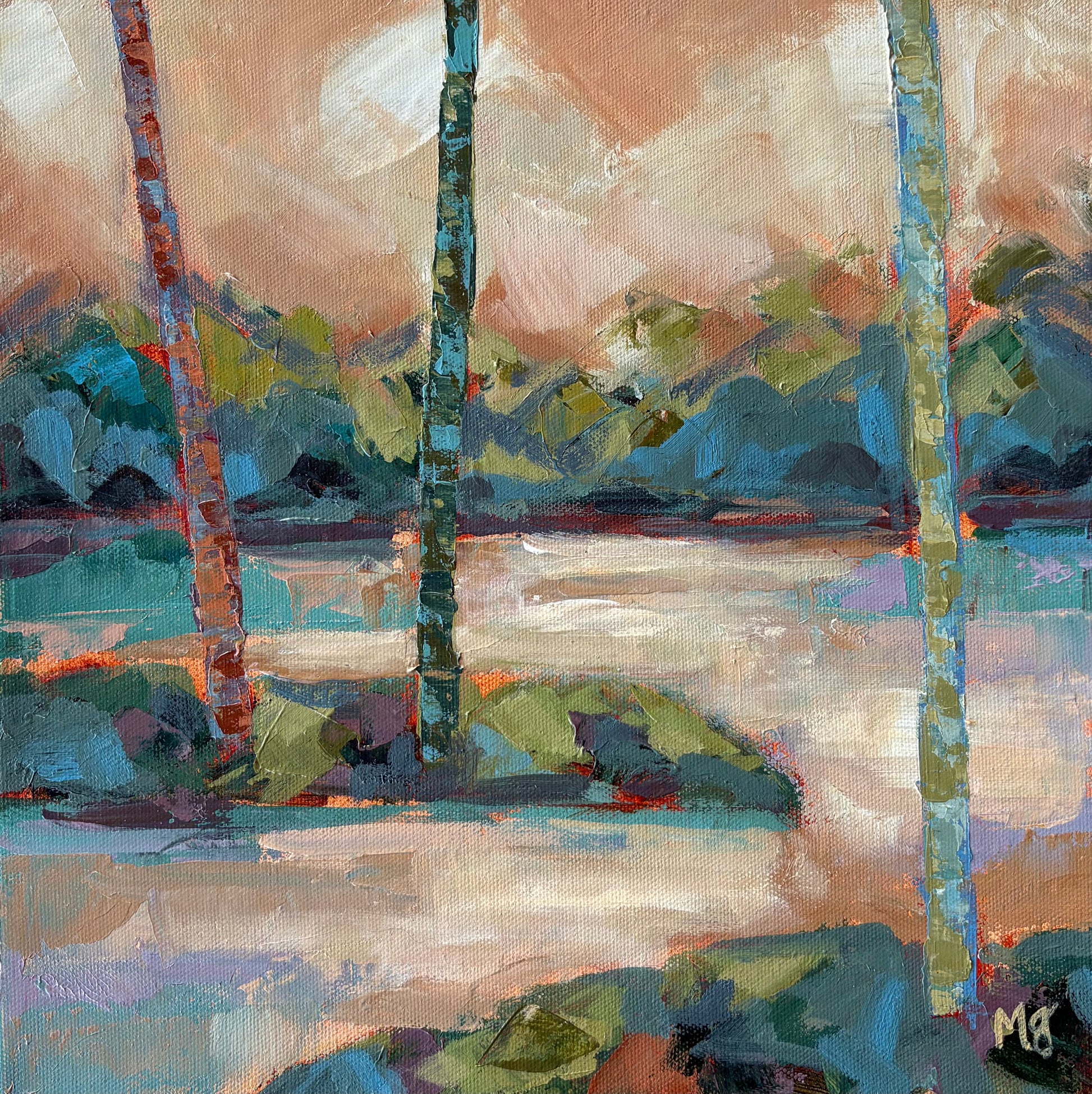 The focus was to loosen up and play: experimenting with color and using larger brush work alongside my trusty palette knife.
